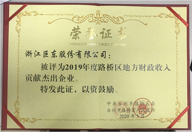 2019年度路橋區(qū)地方財(cái)政收入貢獻(xiàn)杰出企業(yè)
